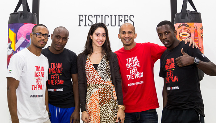 It is 'Art with a Punch'. FISTICUFFS - a fascinating group exhibition curated by H.H. Sheikha Wafa Hasher Al Maktoum opened last evening at FN Designs.